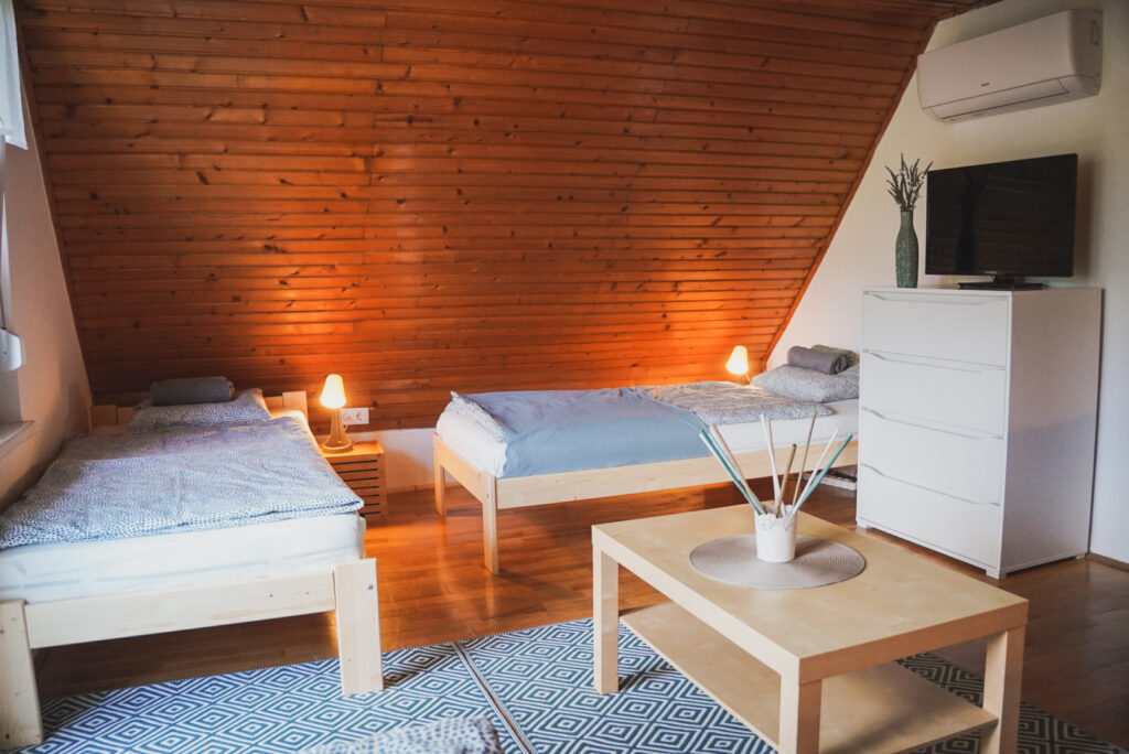 Vendégházunk 5+3 fő részére biztosít kényelmes pihenést, bababarát felszereltséggel és biztonsági megoldásokkal a kisgyermekes családok számára is.